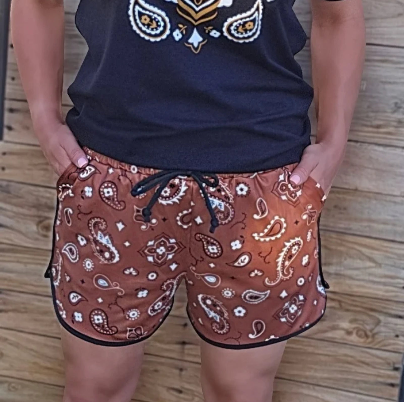 Elevate your summer style with our Bandana Babe Brown Shorts! The soft, comfy fabric paired with the cute brown bandana pattern will have you feeling stylish and comfortable all day long. Complete the look with the matching tee for a fun and effortless outfit.(P.S. they have pockets!!)