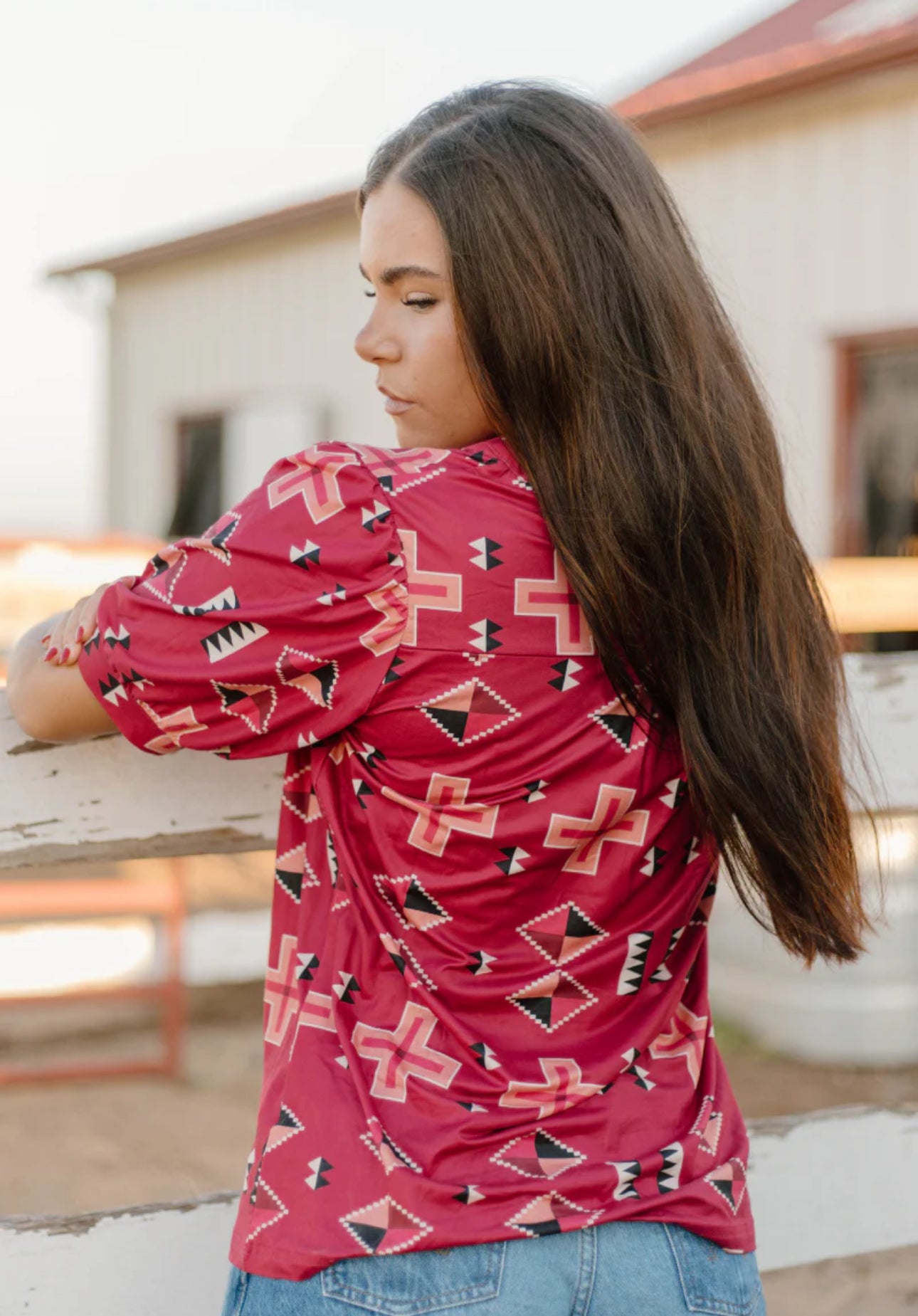 Elevate your wardrobe with the Berry Aztec Top, featuring a vibrant berry hue and striking Aztec patterns. This unique design adds a bold, cultural flair to your look, perfect for making a confident style statement. Comfortable and eye-catching, it’s an ideal choice for those who want to stand out effortlessly.