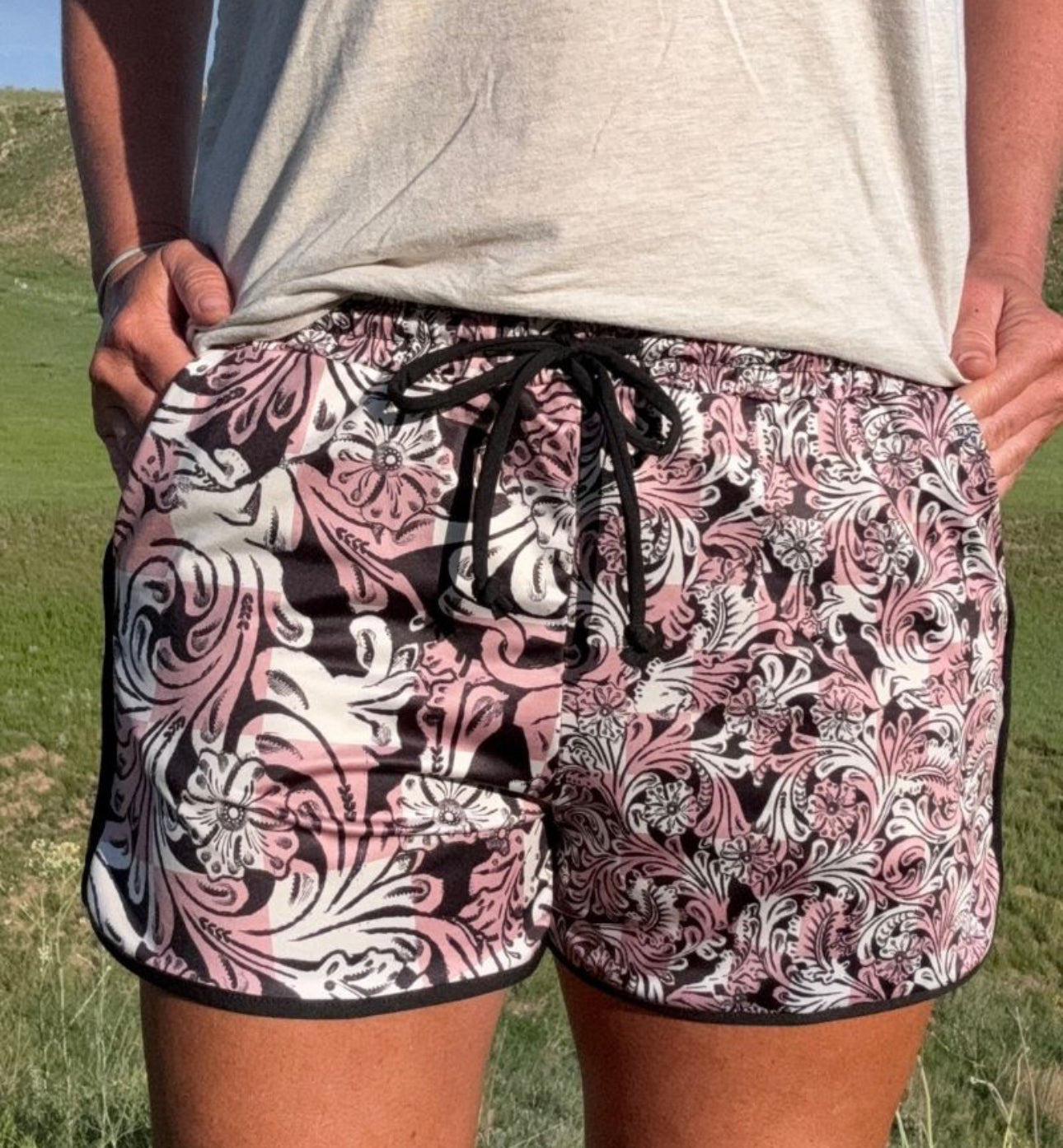 Get ready for some fun in the sun with our Checked In Tooled Shorts! Adorned with cute and unique tooled checkered patterns, these shorts are sure to turn heads. Featuring both large and smaller prints in neutral colors, they're perfect for any outfit. And with pockets and a drawstring, they're as functional as they are stylish. Embrace the summer vibes and add these shorts to your wardrobe today!