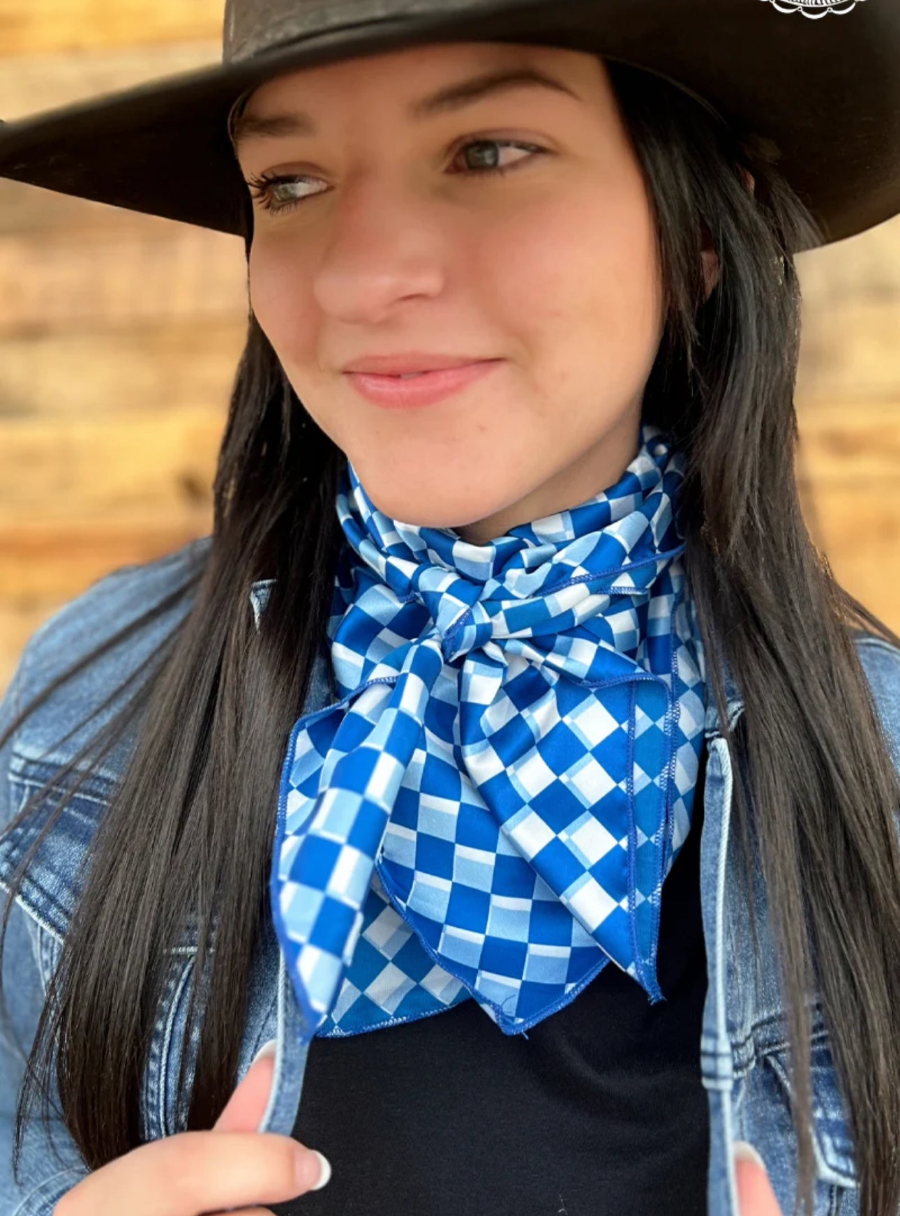 Wrap yourself in playful style with the Pep Rally Wild Rag in Blue! This blue and white checked wild rag adds a touch of fun to any outfit. Perfect for cheering on your team or spicing up your wardrobe, this rag is sure to be a crowd pleaser! Or Get your pup ready for the ultimate pep rally with our Pep Rally Wild Rag Blue! This blue and white checked wild rag will add the perfect amount of spunk.
