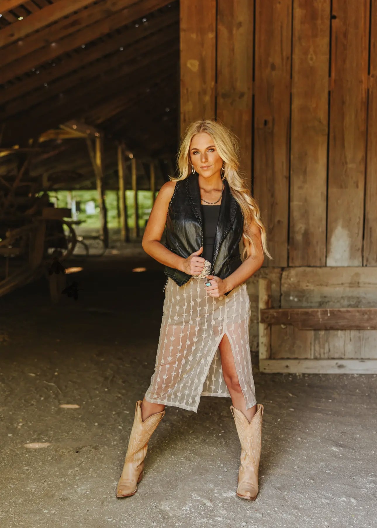 Meet the Southern Draw Skirt in Bone by 2 Fly Co. This isn't just a skirt; it's a unique blend of Western and a touch of everything. Crafted with meticulous attention to detail, it's designed to be versatile and can be paired with almost anything in your wardrobe. With 2 Fly Co, it's not about following trends; it's about creating them. Stay fly with 2 Fly Co!