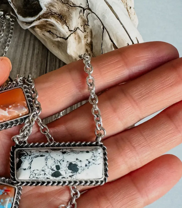 Western Semi Stone Bar Necklace WHITE & BLACK