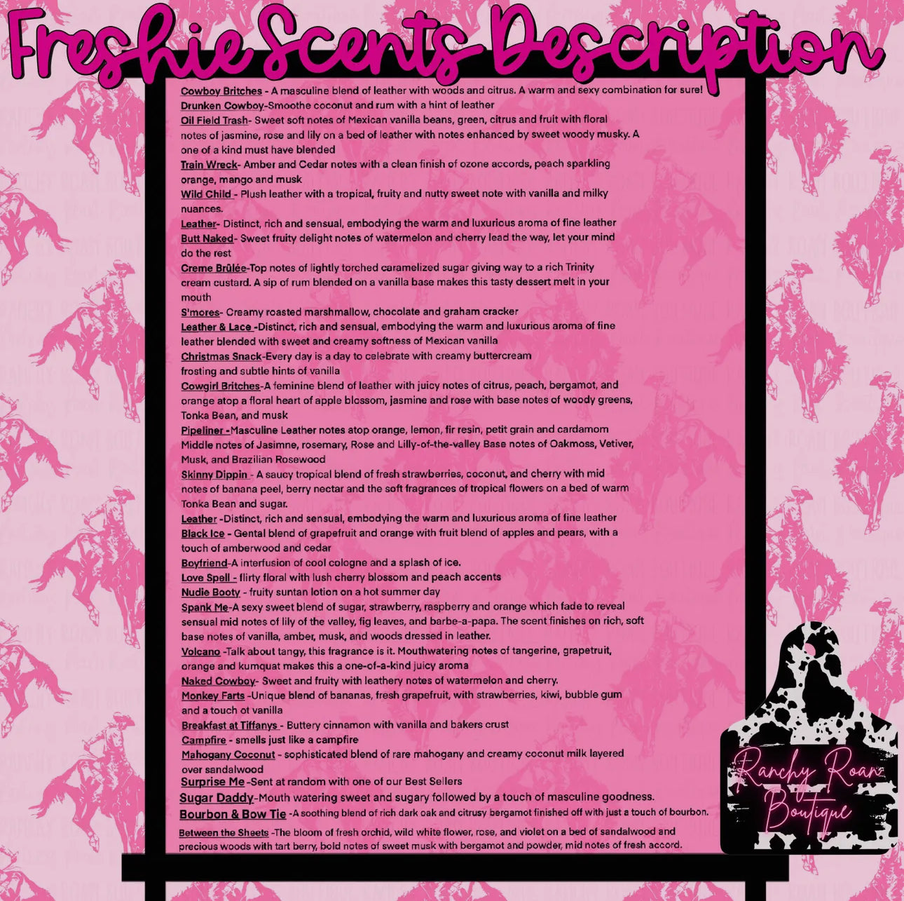 Please Note: These come UNSCENTED and include a 5 ml bottle of spray for you to use to scent (and re scent) your freshie!